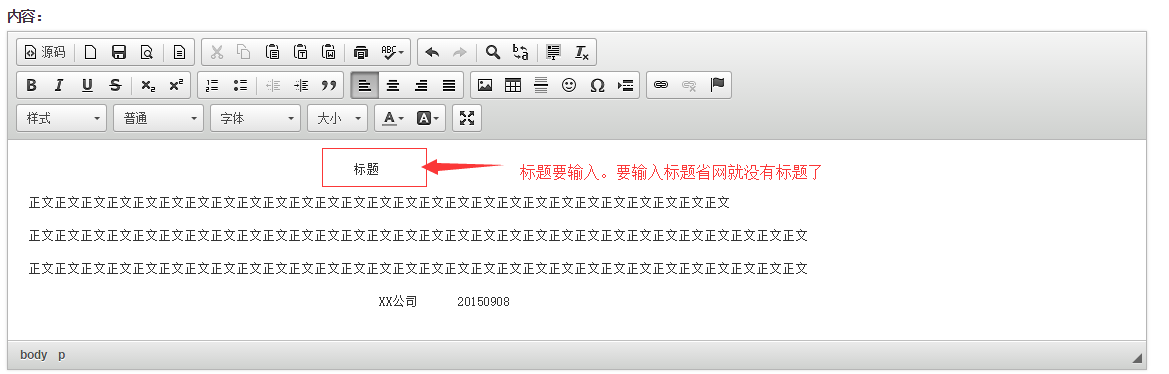 5、 輸入正文 標(biāo)題要輸入(如果不輸入標(biāo)題省網(wǎng)就沒(méi)有標(biāo)題了。)