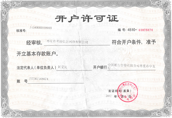 棗莊市英特信息網(wǎng)絡(luò)有限公司公戶信息